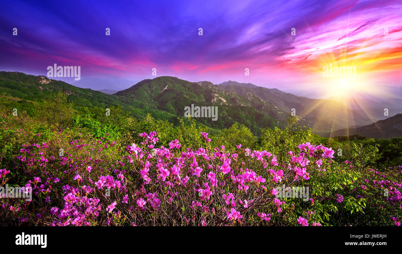 Beautiful Pink Flowers On Mountains At Sunset Hwangmaesan Mountain In South Korea Stock Photo Alamy